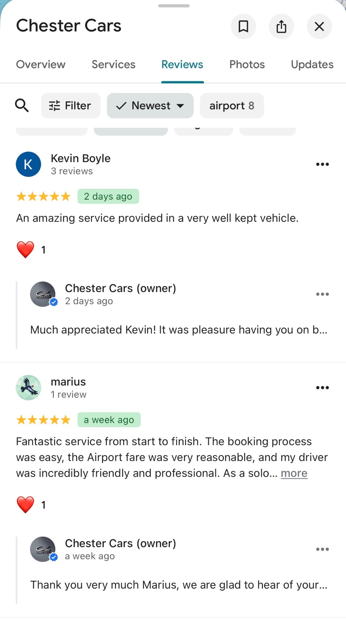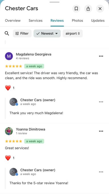 You can leave a review on our google page! At the home page press the icon X and will take you to our Google Review Page or Just copy the link below: